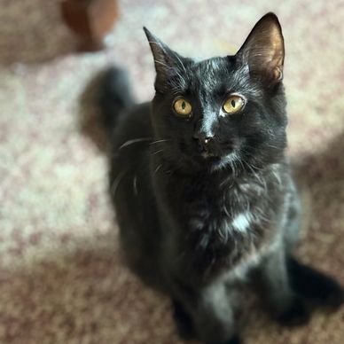 Skye moves through her world with an elegance that’s captivating to watch, gracefully weaving her way into the hearts of her companions and human friends alike. Her playful innocence and affectionate nature make her an instant favorite among other cats, with whom she easily shares her gentle spirit. Skye’s presence brings a calming, joyful energy to any space, creating a comforting environment for both her fellow felines and the humans lucky enough to be in her circle.