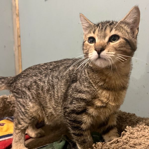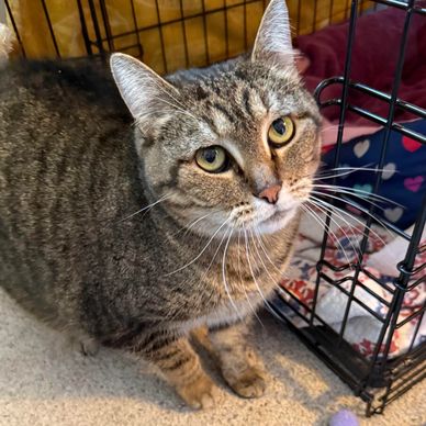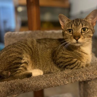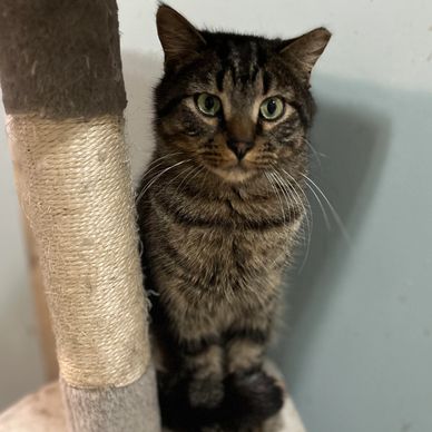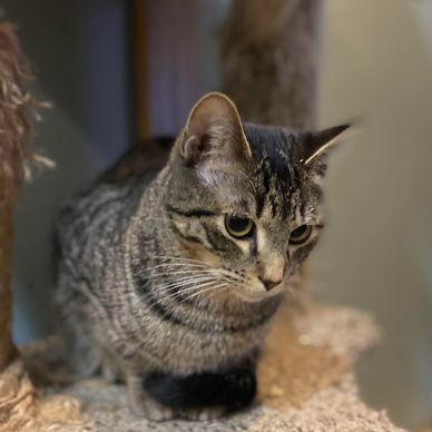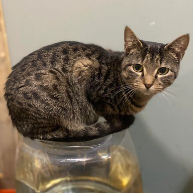 Spitfire is a cat with a personality as fiery as her name suggests. She's a true spitfire, displaying a spirited and independent nature that sets her apart. While she may be initially shy and somewhat reserved, she is a young and undeniably cute cat, with all the potential to become an affectionate and loving companion when she's ready.