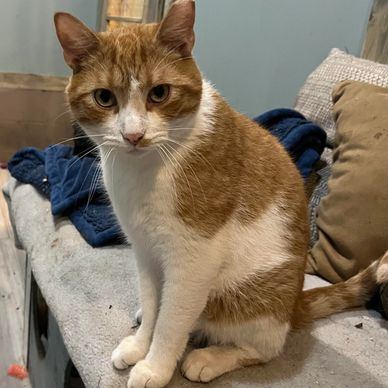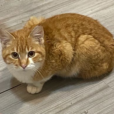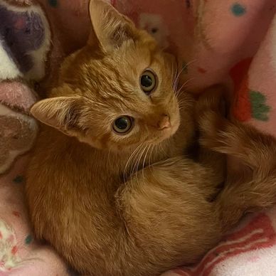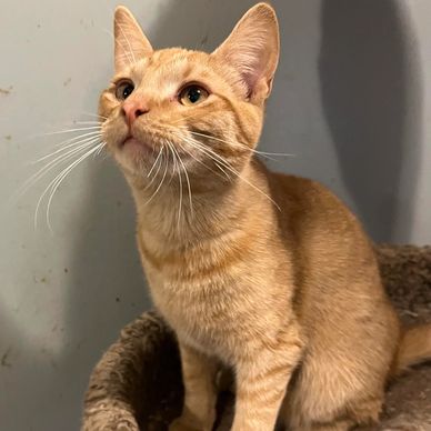 Allow me to introduce Pumpkin, a vibrant older kitten born in September 2023. With a playful spirit that knows no bounds, Pumpkin embodies the essence of youthful exuberance, always ready to pounce on the next adventure that comes his way. While he may still be on a journey to fully trusting humans, his heart is as big as his playful antics, and he's already won over the feline companions in his midst.