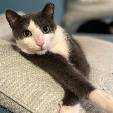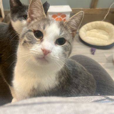 Binx has the perfect mix of energy and chill. He’s obsessed with toys, loves food (especially treats!), and is always up for a playful adventure. When he’s not zooming around, you’ll find him relaxing nearby or cuddling with a feline friend—he does great with other cats and would love a kitty buddy.