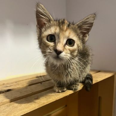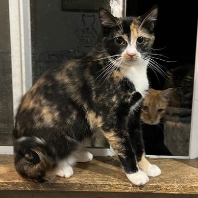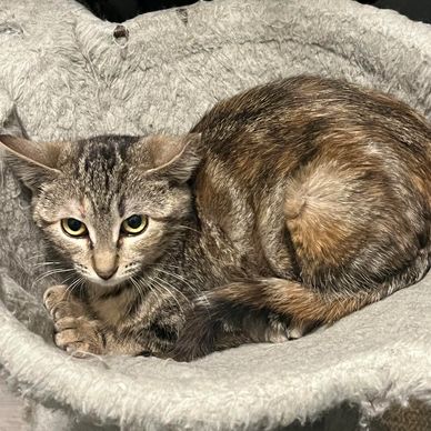 Meet Coco, a stunning young calico with the softest fur and the most soulful eyes. Beneath her shy exterior lies a gentle heart that is slowly beginning to open up to the world around her. While Coco is still learning to fully trust people, she has already made encouraging progress—and every little step she takes shows just how much potential she has to become a loving, devoted companion.
