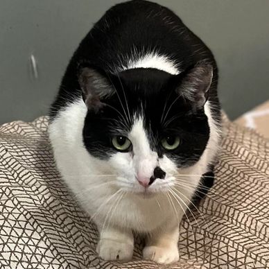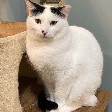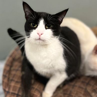 Phantom is wonderful with other cats and would thrive in a home with feline friends who can help him continue to build his confidence. He’s looking for a patient adopter who will give him the time he needs to settle in and fully shine.