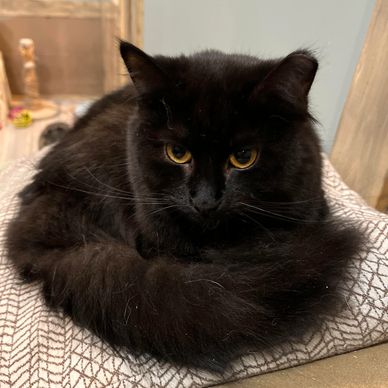 Now, this once-timid boy has discovered the joy of companionship. He’s even found his purr—a soft, steady hum of happiness that he now shares freely. Phantom enjoys attention and has begun to seek it out, surprising us all with his progress. While he may still need a little time to adjust in a new home, he’s shown he’s ready to embrace love and affection.